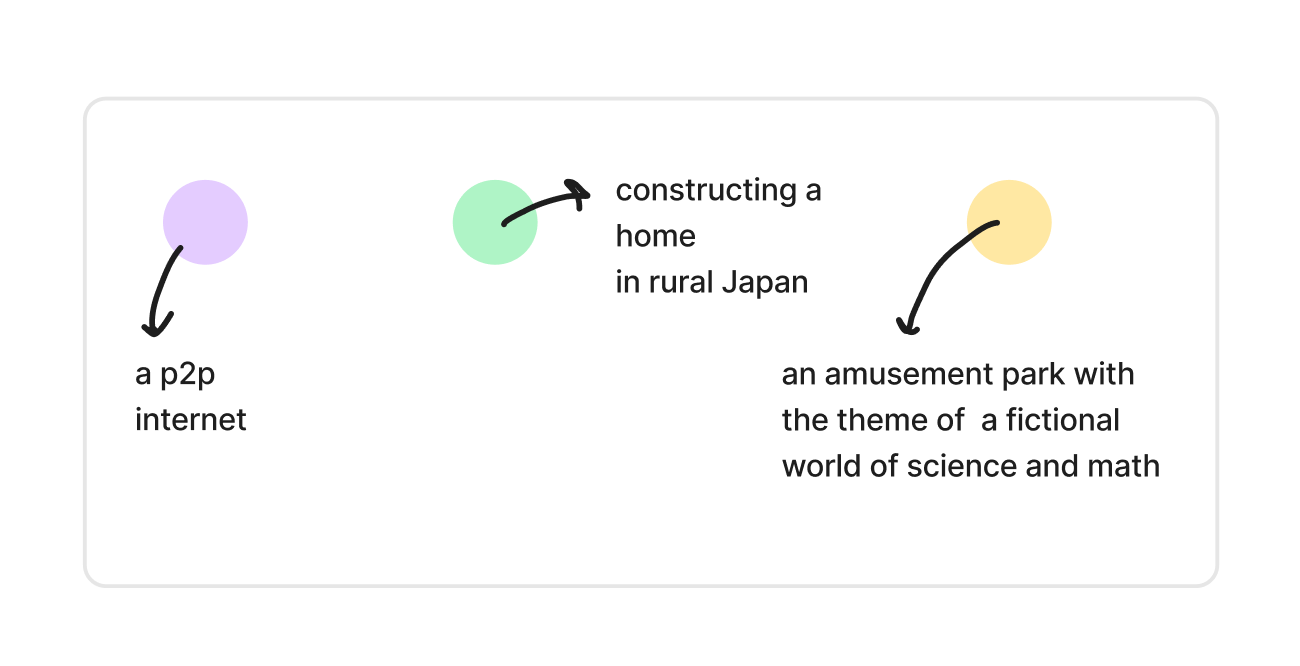 Concepts were extracted from Media that you pulled from sites on the internet, such as the copy on the curl.projects website. You could also play with these Concepts by joining them together to form new Concepts (a glimpse at Wayfinder).